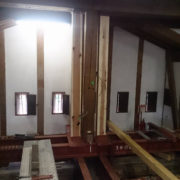 簡単に言うと「つっかえ棒」のような感じです。 この時の使用角材の材質・太さ、また設置器具等は建物の構造により毎回変わります。 今回は乾燥杉材6寸角、鋼製受金具等を使用予定です。