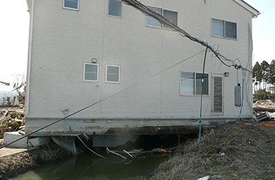 宮城県の沈下修正工事です。津波被害で流された住宅の移動及び沈下修正を行いました。…